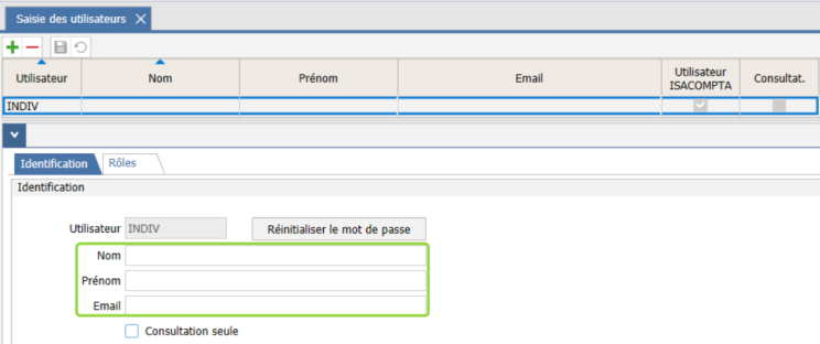 Pour activer le compte eFacture, il est nécessaire que certaines informations soient renseignées sur l'utilisateur dans ISACOMPTA.