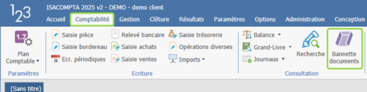 - Vérifier la présence de la bannette de documents dans le menu comptabilité