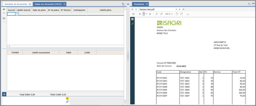 La facture est saisie et le fichier PDF est directement lié à l'écriture :