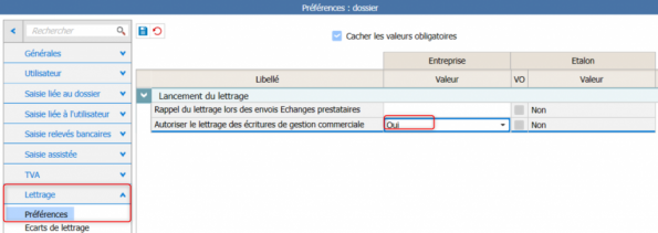 Par défaut dans ISACOMPTA, le lettrage des écritures provenant de la gestion commerciale n'est pas activé.