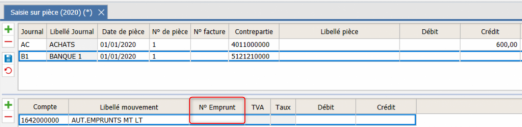 Je n'arrive pas à saisir le numéro d'immobilisation, d'emprunt ou de contrat en saisie.