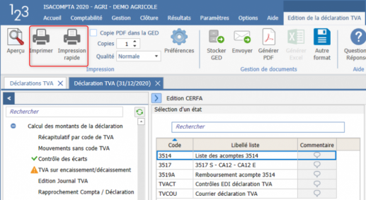 Quelle est la différence entre les boutons Imprimer et Impression rapide ? Imprimer : Permet de choisir l'imprimante à utiliser. Impression rapide : Lance l'édition du document sélectionné sur l'imprimante par défaut.